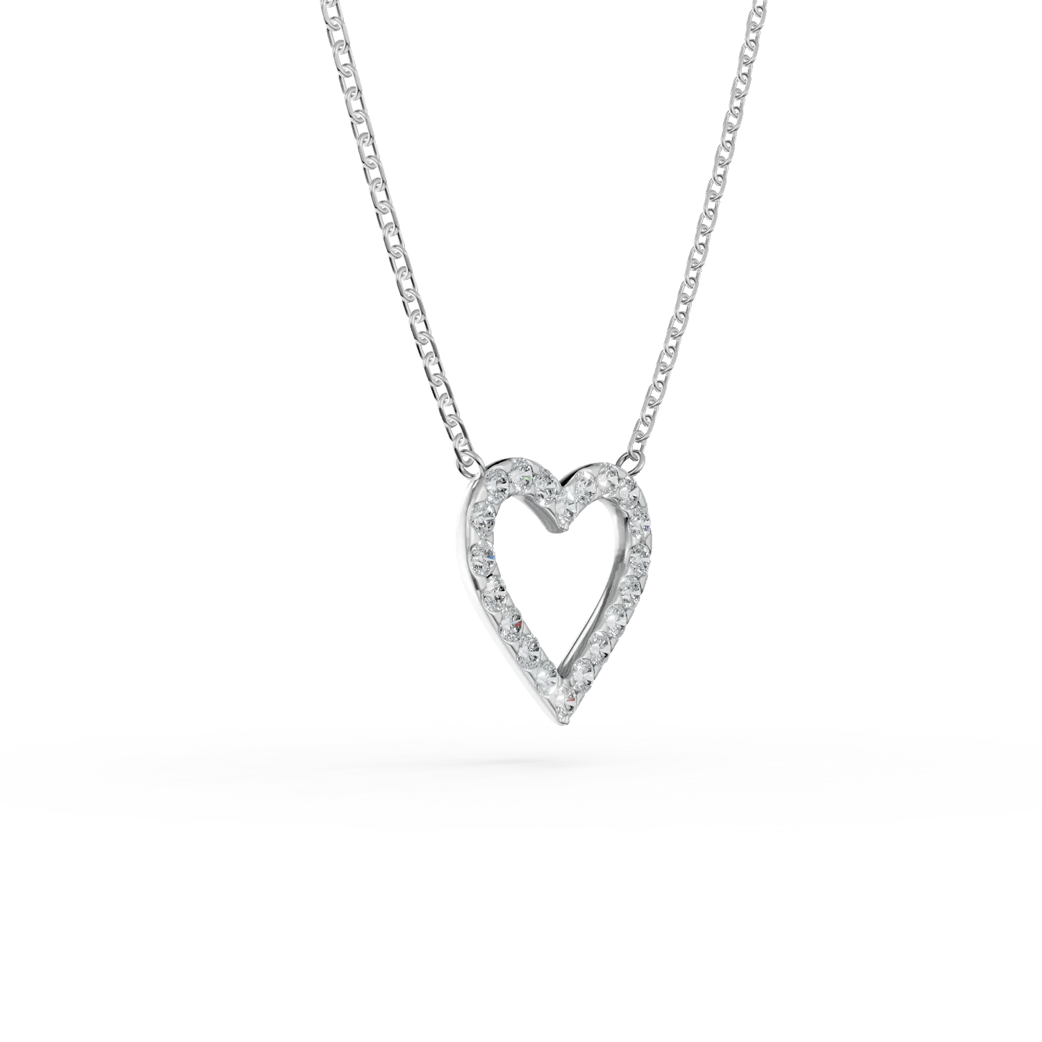 Descoperă eleganța subtilă a acestui lănțișor cu pandantiv inimioară din aur alb, înfrumusețat cu diamante de 0.2ct. Designul său rafinat și claritatea pietrelor îl fac alegerea perfectă pentru momentele speciale. Fatetele diamantelor captează lumina într-un mod aparte, adăugând o notă de rafinament fiecărei ținute. Ideal pentru a exprima iubire și eleganță atemporală.