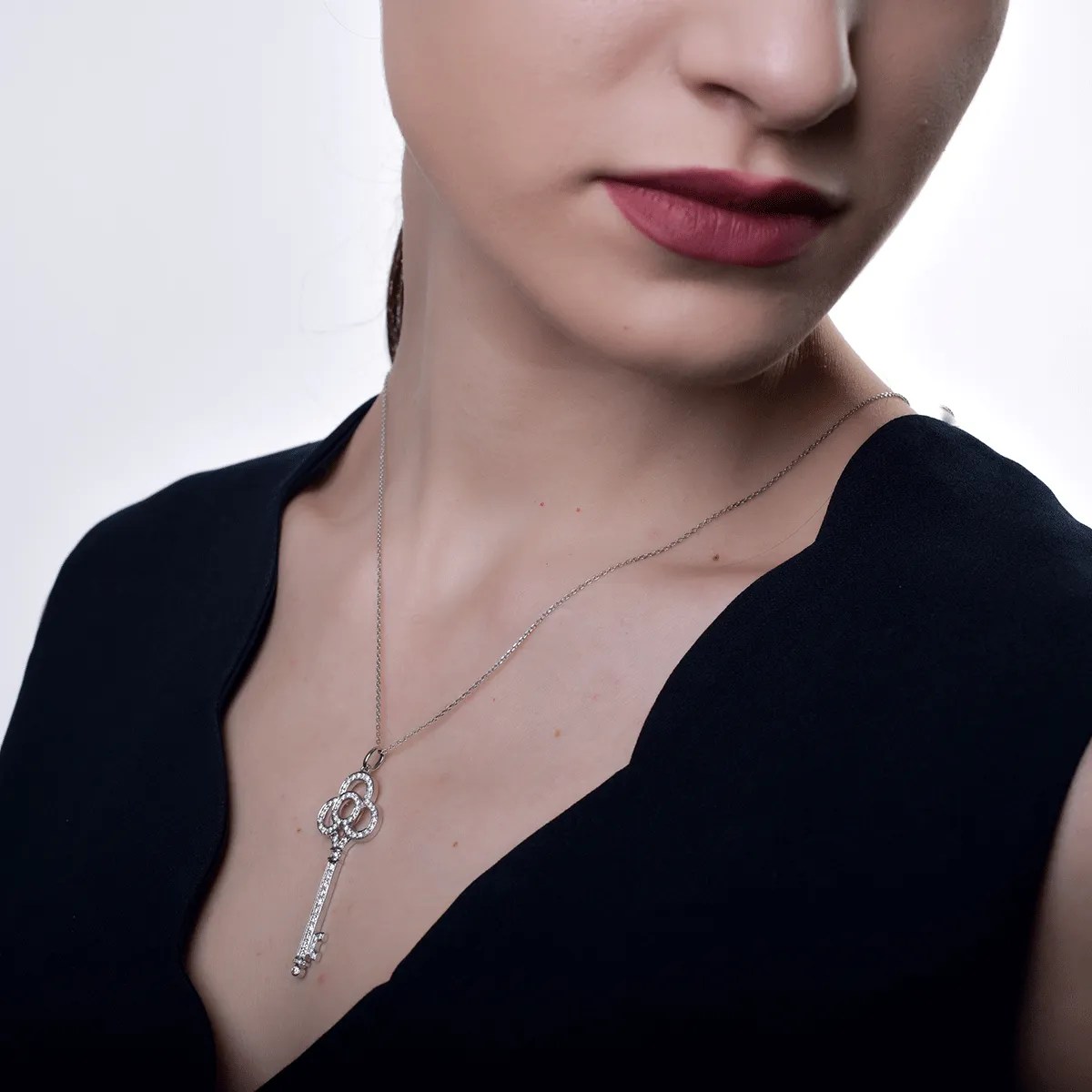 Alege o bijuterie care îți reflectă personalitatea cu acest pandantiv delicat. Fabricat din aur alb, pandantivul are un design de cheie decorat cu diamante de 0.85ct, simbolizând libertatea și descoperirea de sine.