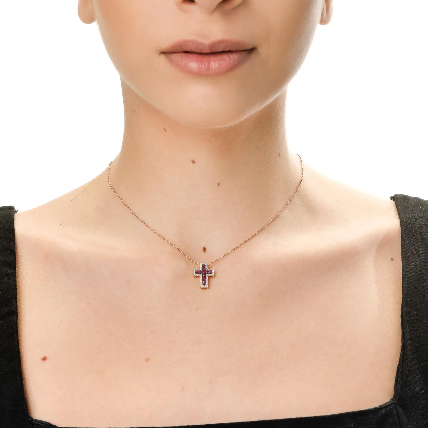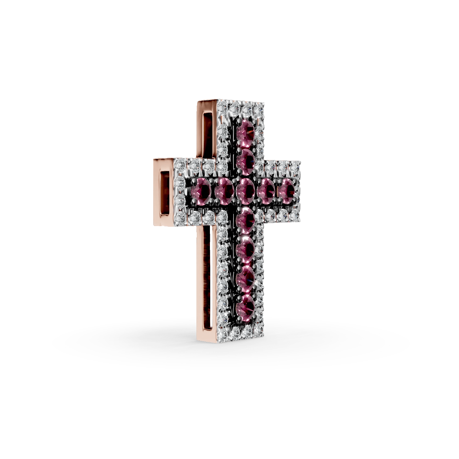 Acest pandantiv cruce din aur roz întruchipează finețea și feminitatea, fiind decorat cu rubine de 0.287ct și diamante de 0.121ct. Aurul roz conferă o căldură aparte, completată de strălucirea rubinelor și diamantelor. O piesă sofisticată, ideală pentru femeile care apreciază simbolurile clasice și eleganța.