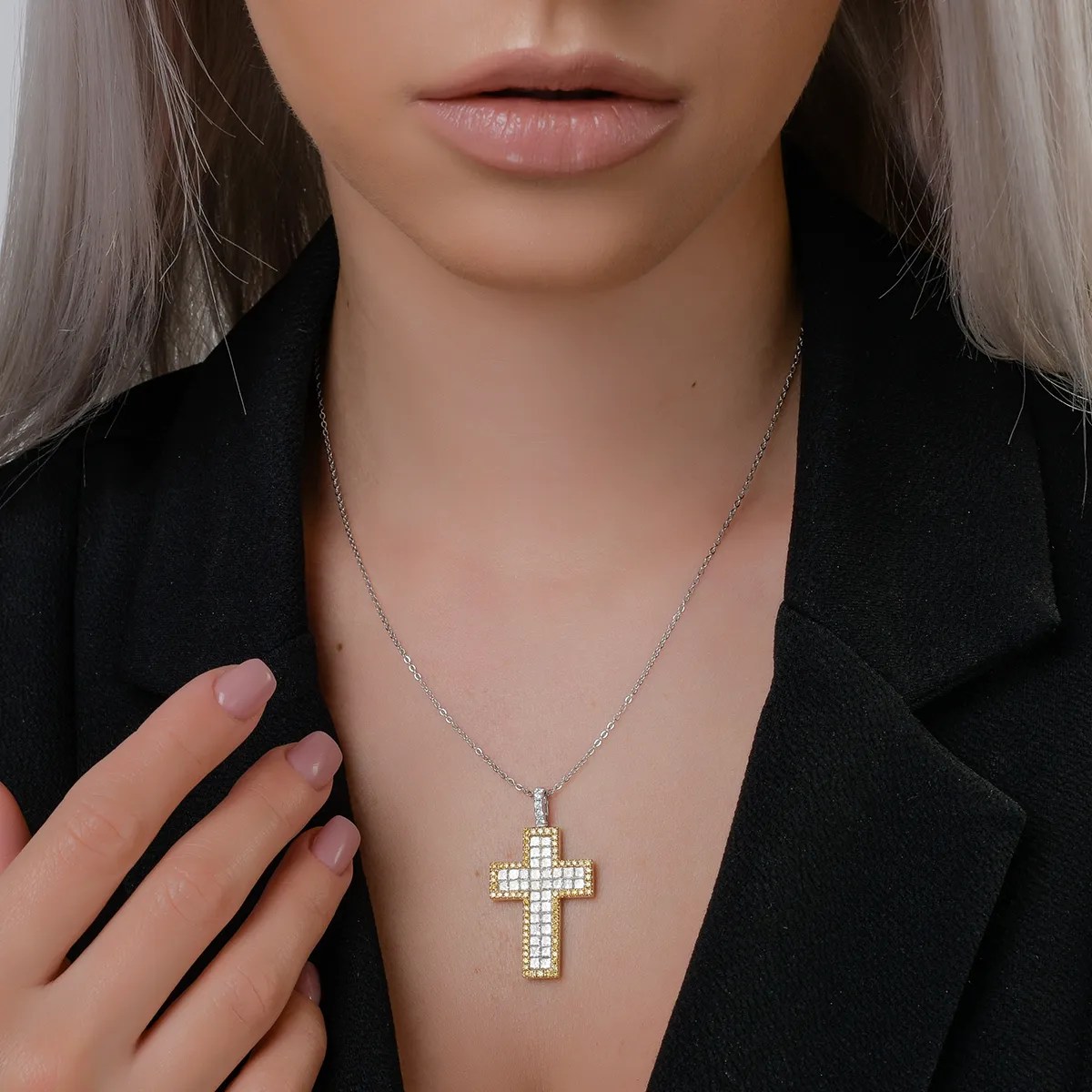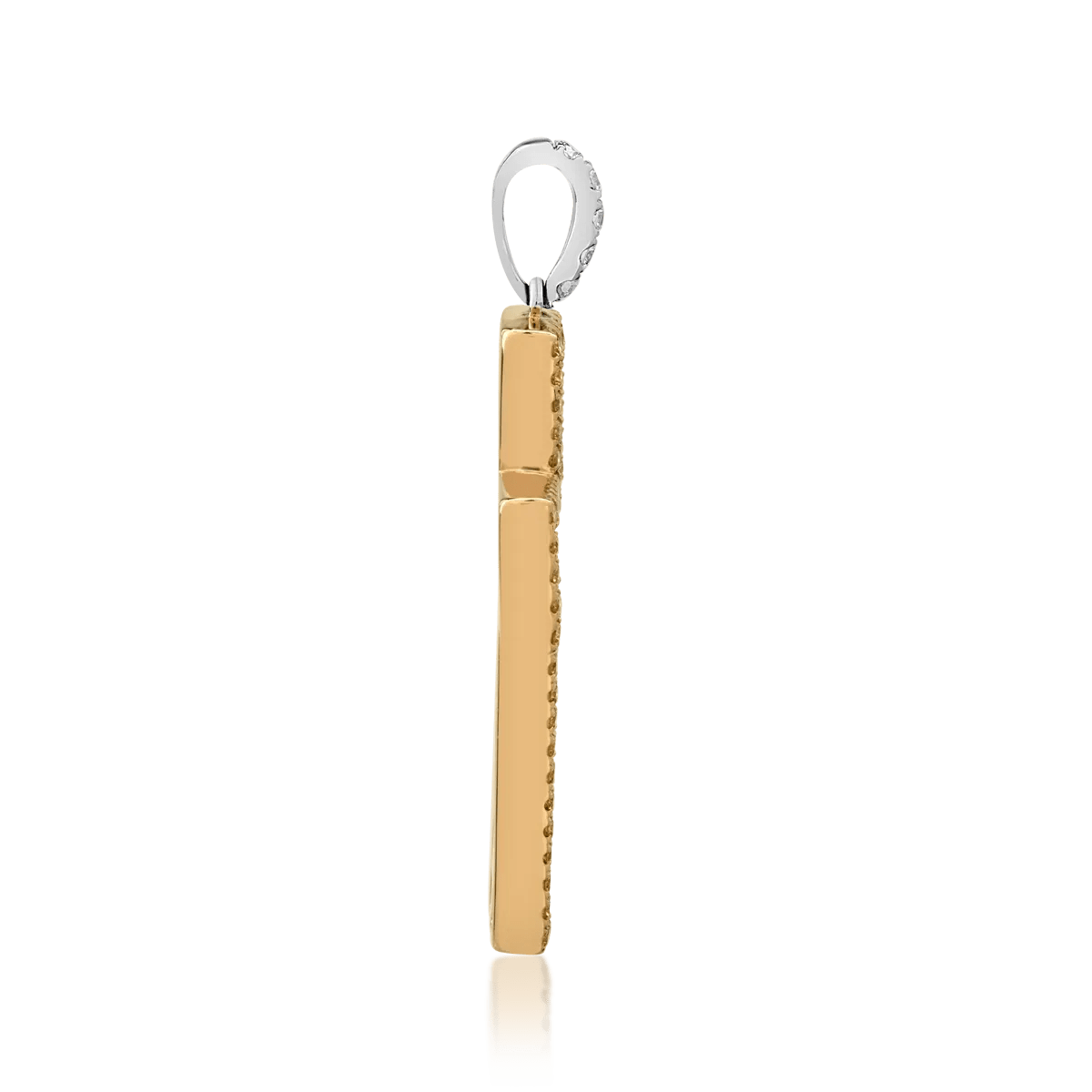 Exprima-ți stilul personal prin acest pandantiv cruce din auralb-galben, înfrumusețat cu diamante galbene de 0.5ct și diamante incolore de 2.3ct. Contrastul între nuanțe și lumina subtilă creează o bijuterie sofisticată ce îmbină tradiția cu modernitatea. Ideal de purtat cu un lanț, acest pandantiv va atrage toate privirile, evidențiind un gust rafinat.