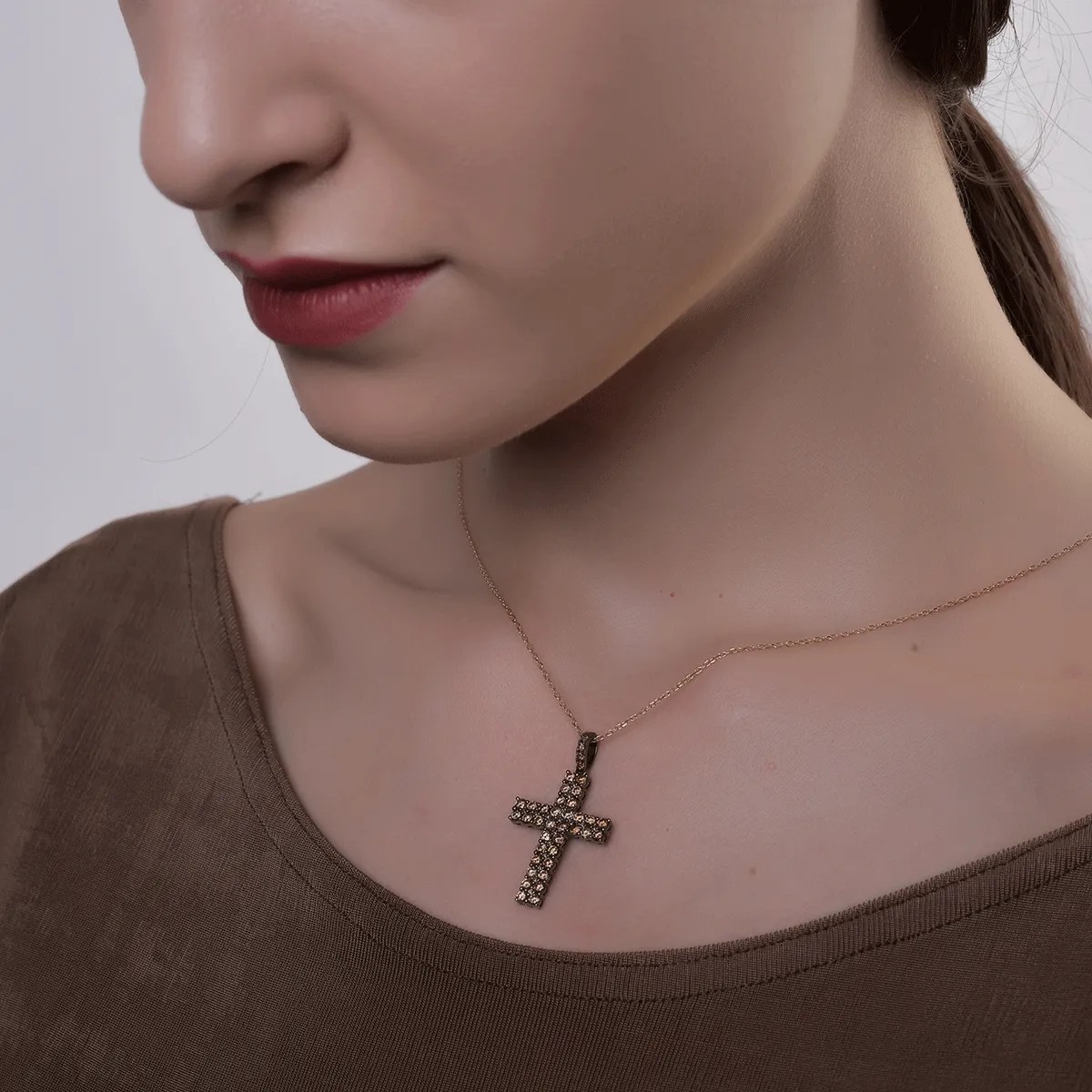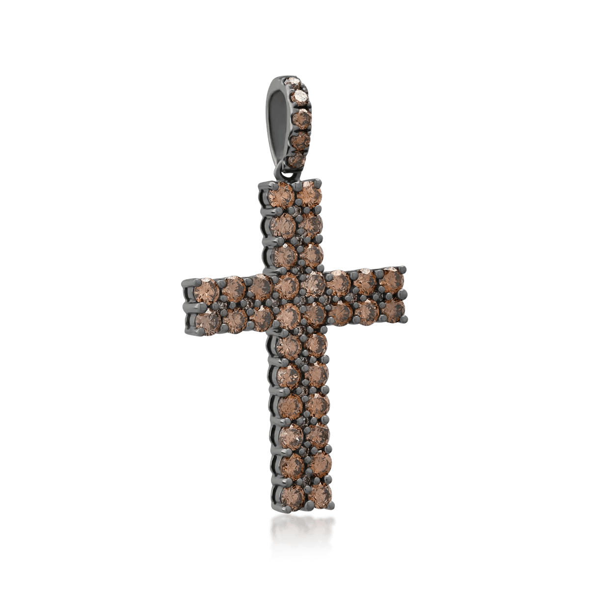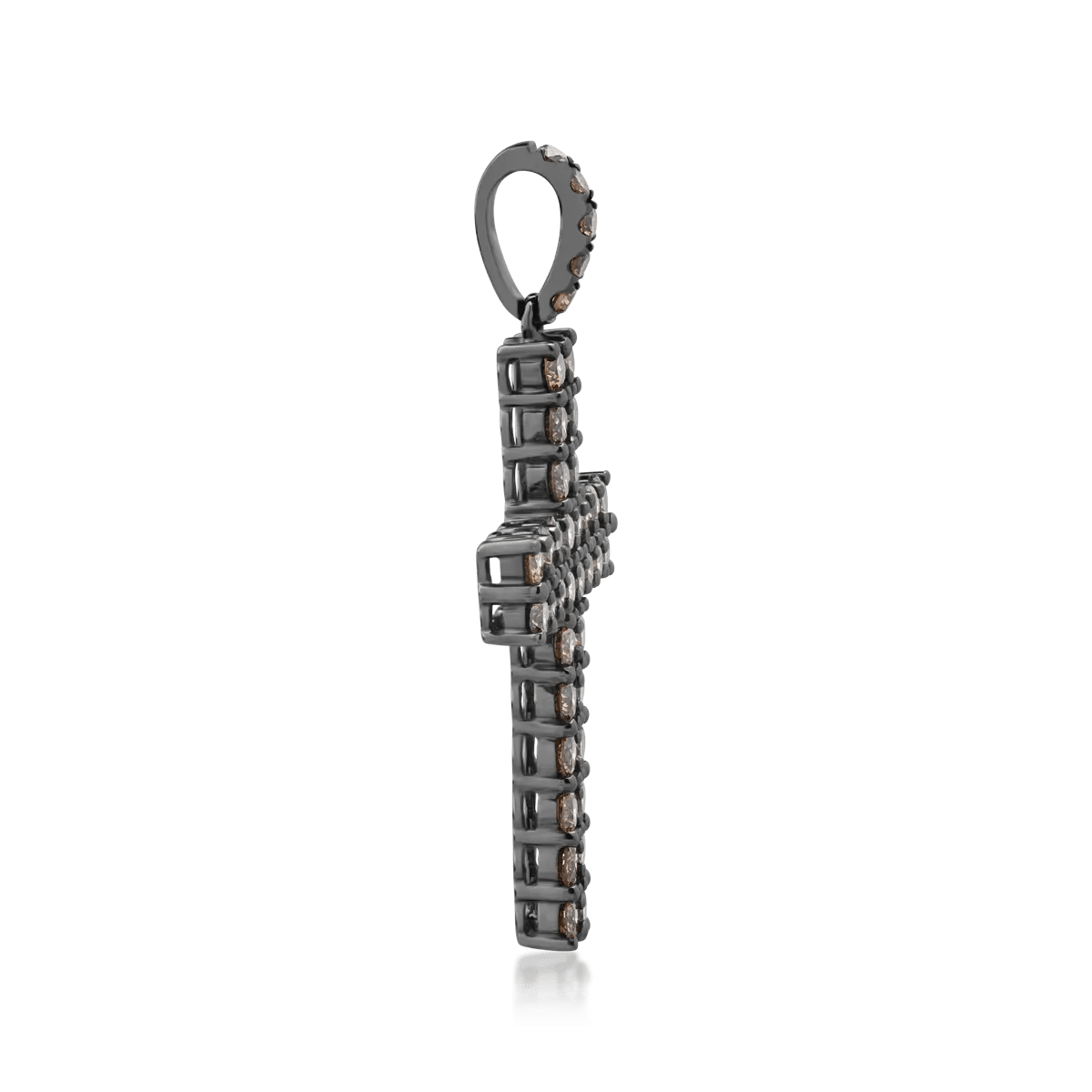 Acest pandantiv cruce din aur negru, înfrumusețat cu diamante maro de 1.85ct, este o bijuterie cu un design sofisticat care exprimă forță interioară și rafinament. Ideal pentru a adăuga o notă de eleganță subtilă ținutelor tale.