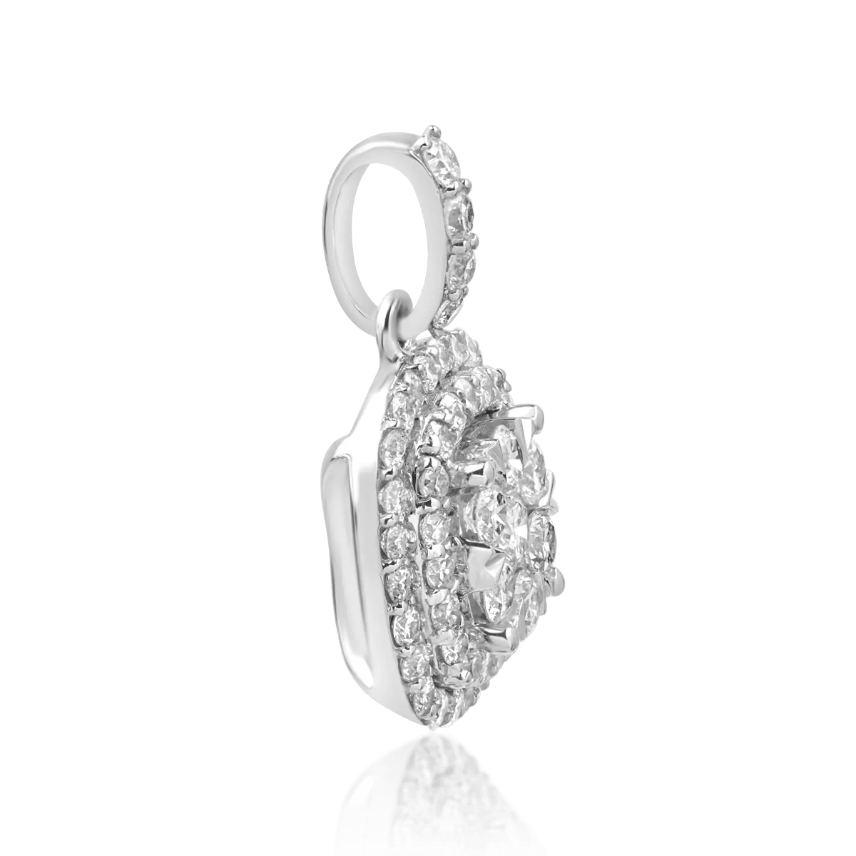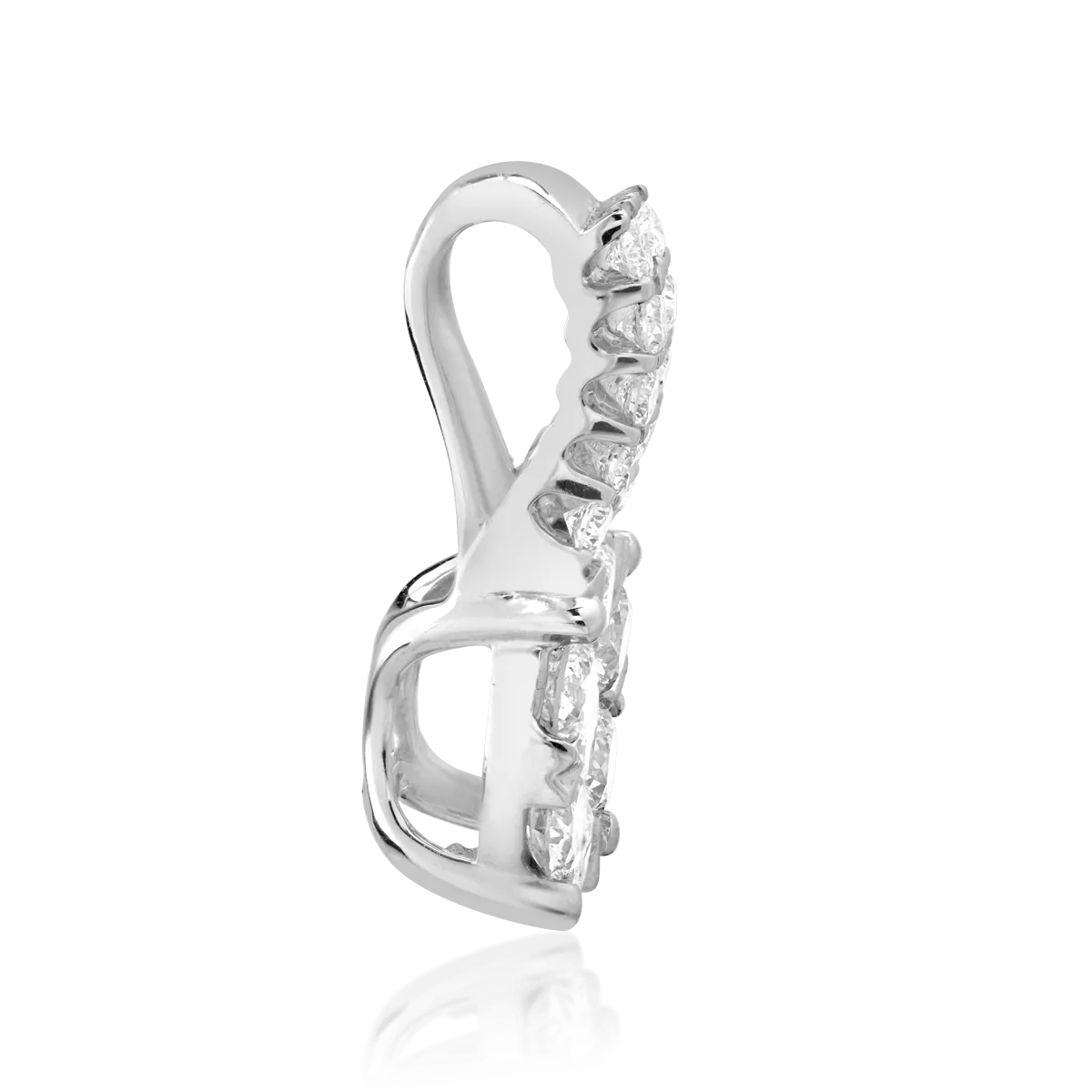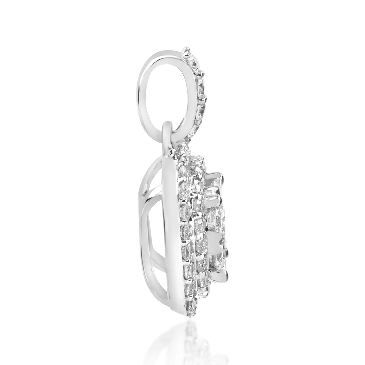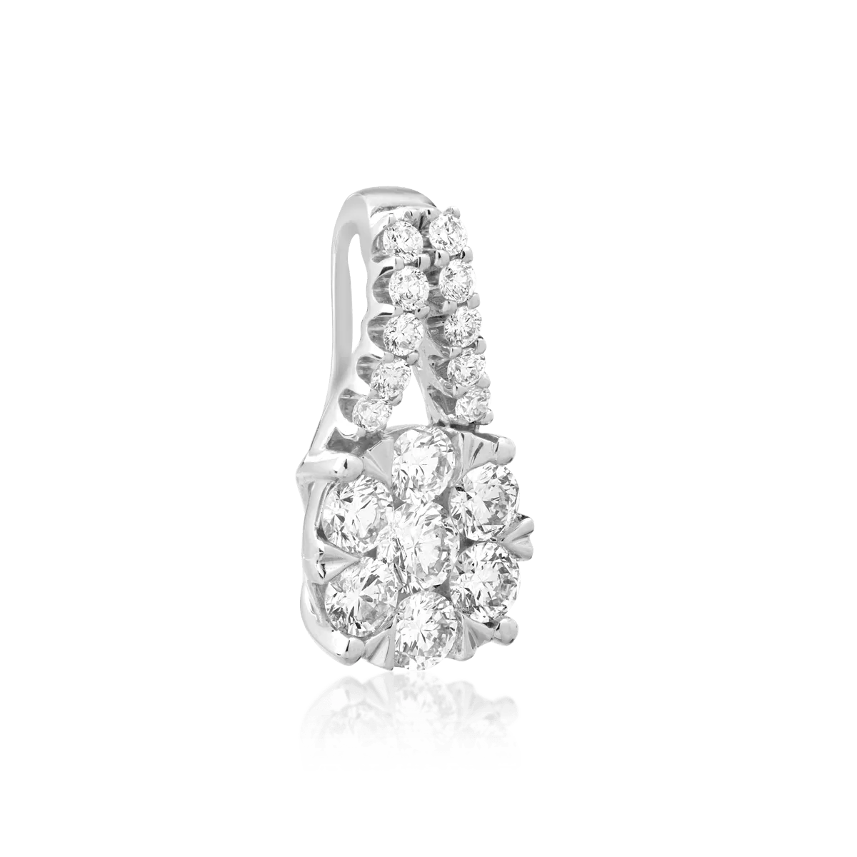 Pandantivul din aur alb, decorat cu diamante de 0.75ct, adaugă eleganță și rafinament oricărei ținute. Reflexiile diamantelor oferă o strălucire continuă, accentuând un design modern și minimalist. Ideal atât pentru purtare zilnică, cât și pentru evenimente speciale.