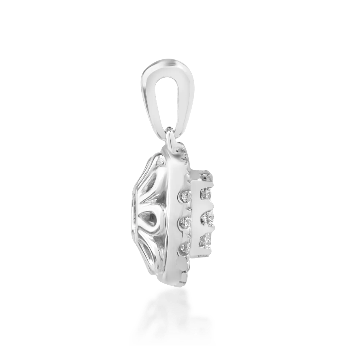 Poartă bijuterii care îți reflectă personalitatea. Acest pandantiv din aur alb cu diamante de 0.3ct combină strălucirea diafană a aurului cu eleganța discretă a detaliilor. Pietrele aduc luminozitate și rafinament, iar montura fină subliniază fiecare detaliu cu grație. O alegere ideală pentru femeia care apreciază subtilitatea și eleganța autentică.