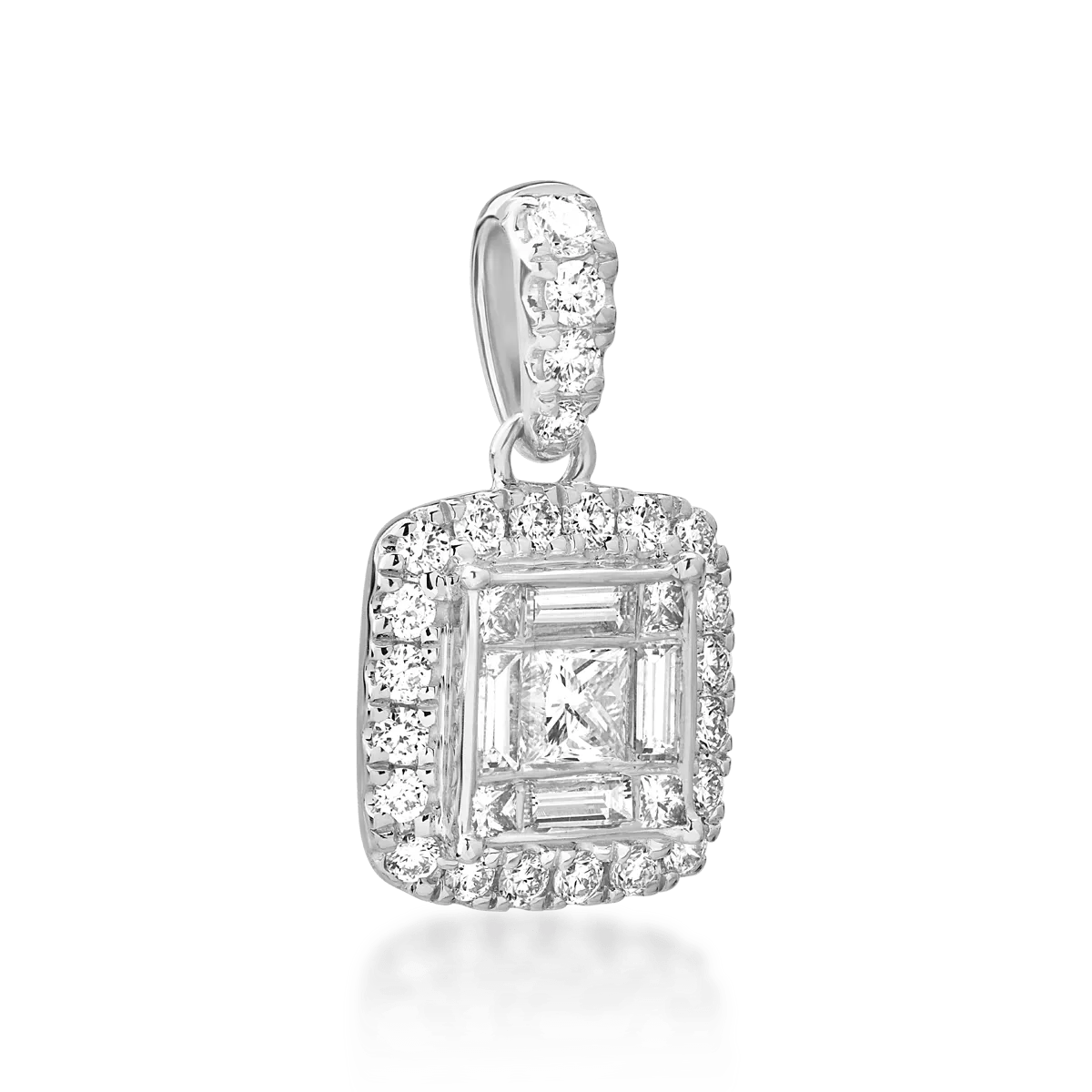 Acest pandantiv din aur alb, cu diamante princess, baguette și rotunde de 0.63ct, îmbină eleganța clasică cu un design modern. Claritatea și proporțiile sale fine îl fac alegerea ideală pentru diverse ocazii, de la întâlniri cotidiene la evenimente sofisticate. Lantul se achiziționează separat.