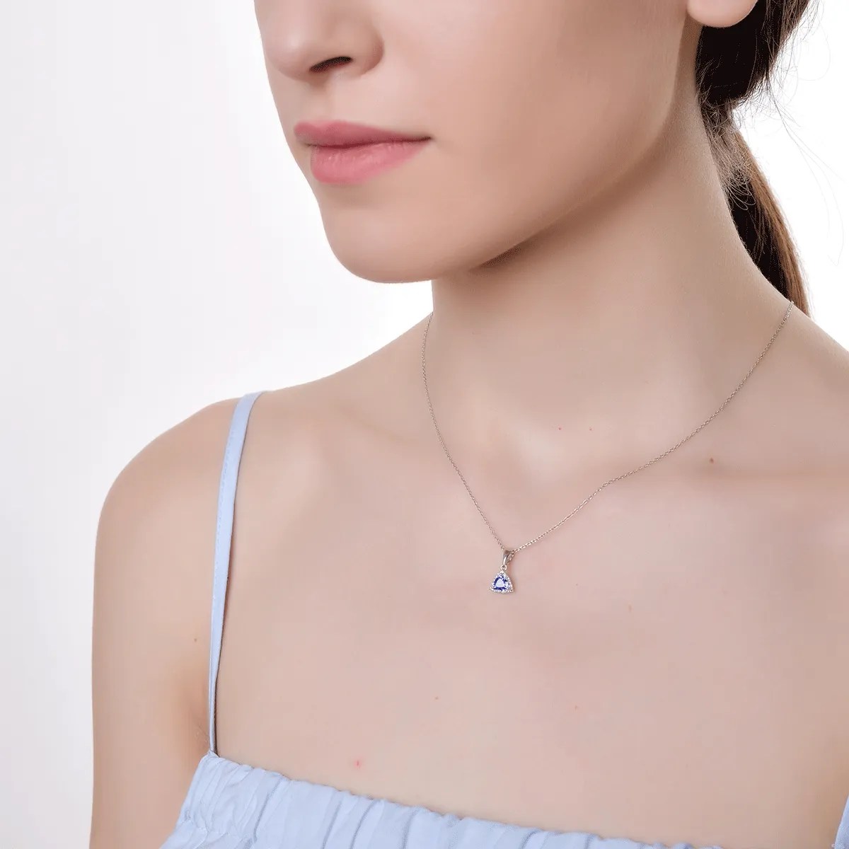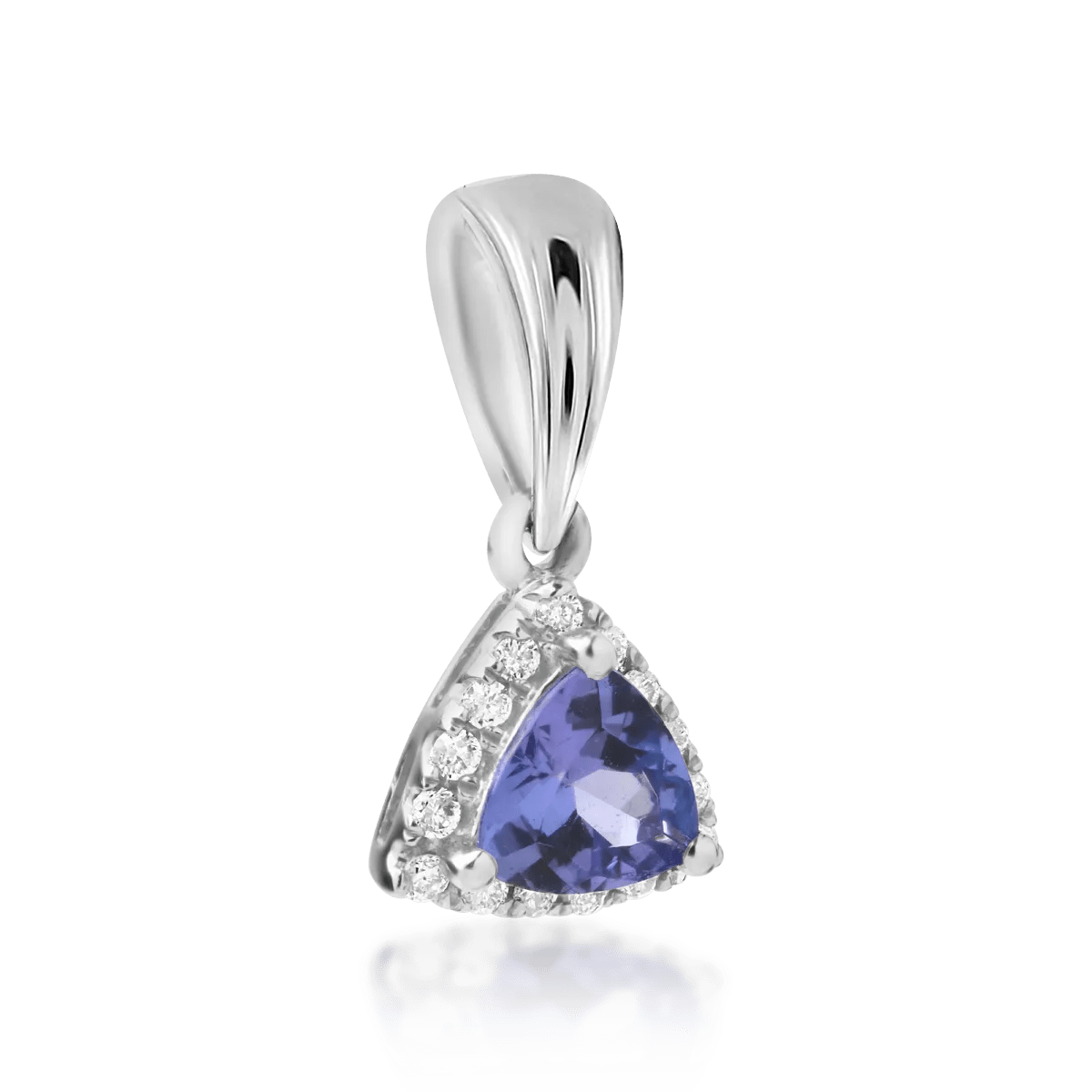 Bucură-te de eleganța unui pandantiv modern din aur alb, prevăzut cu un tanzanit triangle de 0.44ct și diamante de 0.08ct. Designul său minimalist evidențiază frumusețea pietrelor prețioase, reflectând lumina într-un mod captivant. Este o piesă versatilă, perfectă pentru cele mai frumoase momente.