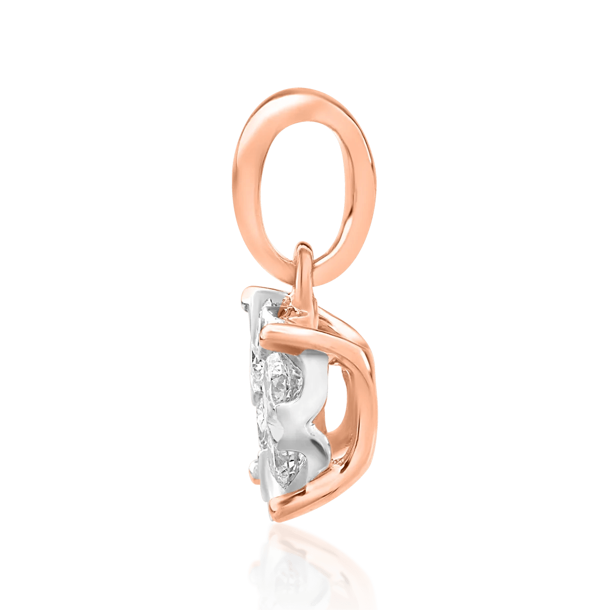 Acest pandantiv din aur alb-roz cu diamante de 0.25ct emană eleganță și rafinament. Contrastul subtil dintre nuanțele de aur pune în valoare strălucirea diamantelor, iar designul său modern combină simplitatea cu sofisticarea. Perfect pentru a fi purtat cu un lanț, accentuează frumusețea delicată a detaliilor.