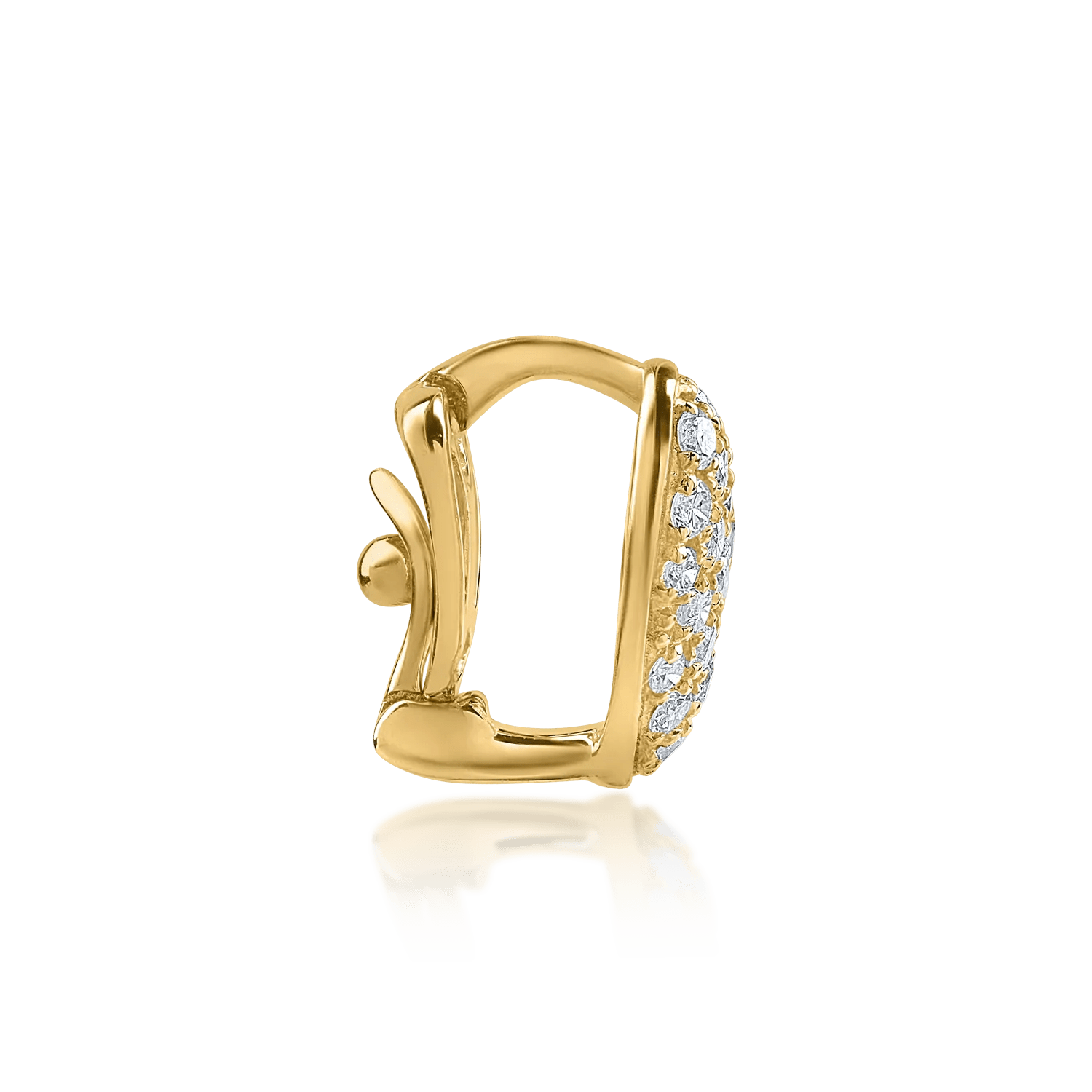 Acest pandantiv din aur galben, împodobit cu diamante de 0.18ct, aduce un plus de strălucire colecției tale. Designul versatil îți permite să îl porți fie ca pandantiv, fie ca charm pentru brățară. O bijuterie distinctivă ce atrage atenția.