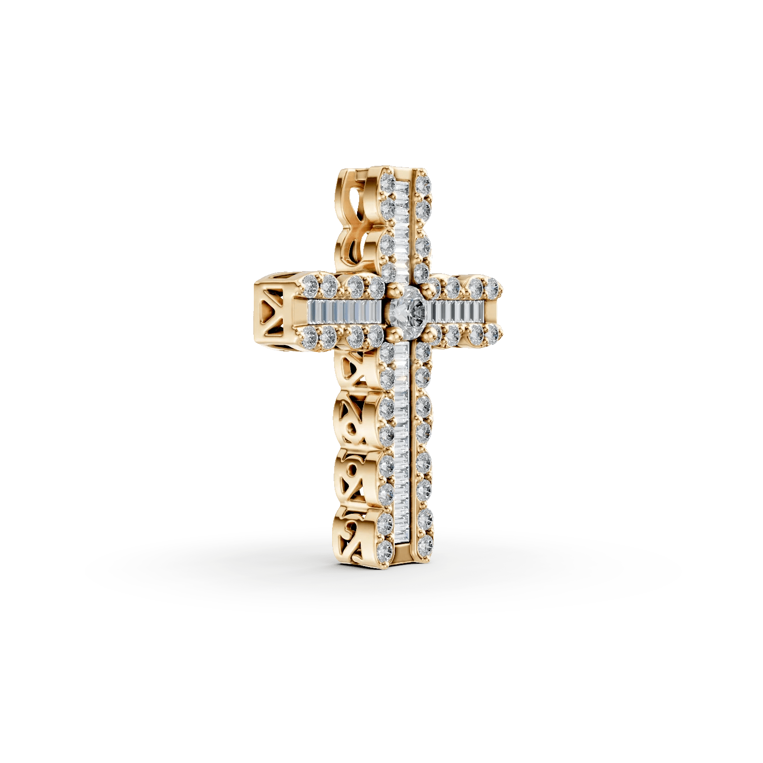 Acest pandantiv de aur galben, cu diamante baguette și rotunde de 0.56ct, îmbină eleganța clasică cu detalii moderne. Strălucirea sa adaugă profunzime și rafinament fiecărei ținute, fiind o alegere perfectă pentru utilizare zilnică sau ocazii speciale.