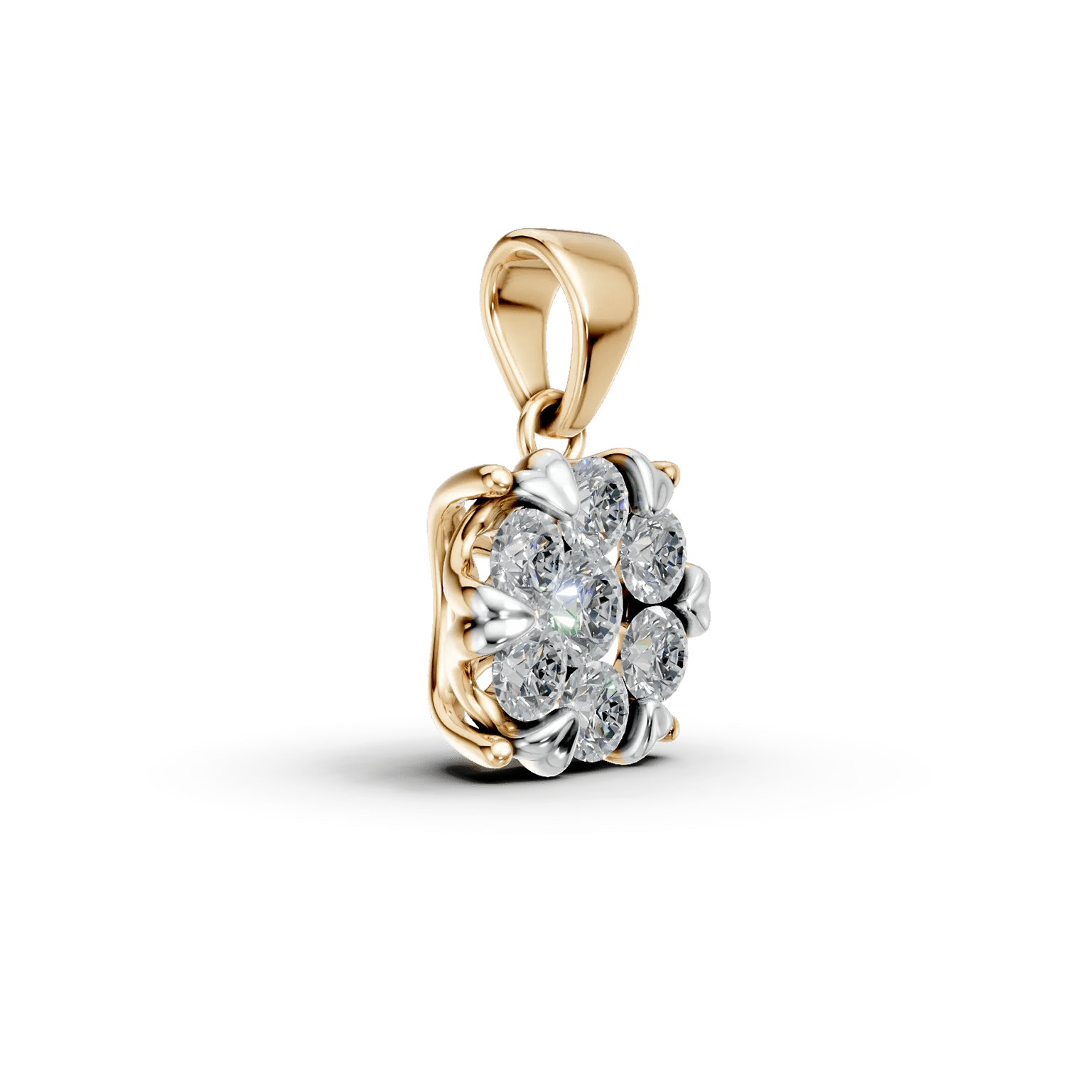 Acest pandantiv din aur galben, înnobilat cu diamante de 0.5ct, întruchipează eleganța simplă. Detaliile sale strălucitoare și designul rafinat fac din această bijuterie o opțiune perfectă pentru orice ocazie. Ideal pentru cei care apreciază delicatețea și frumusețea subtilă.