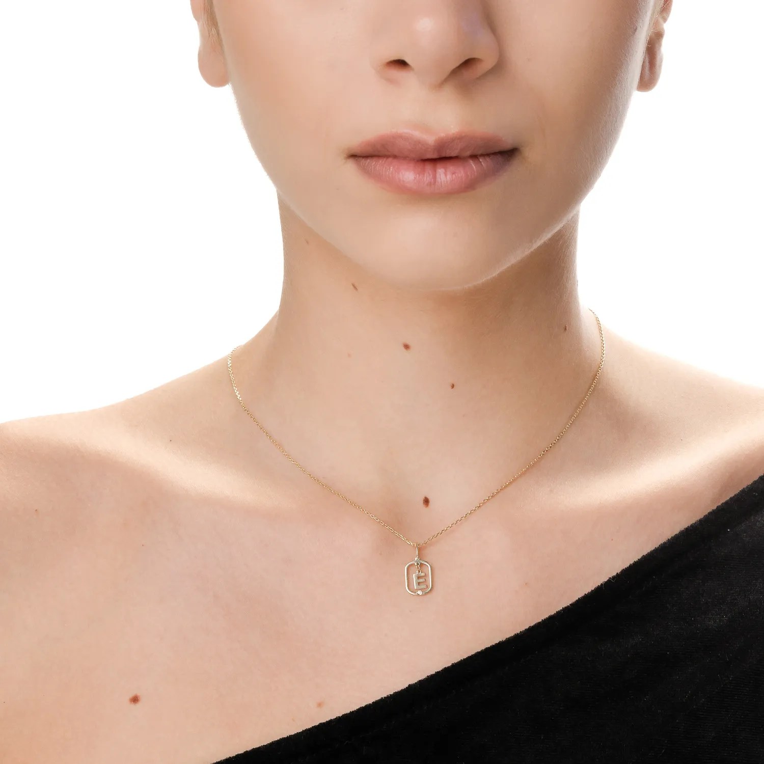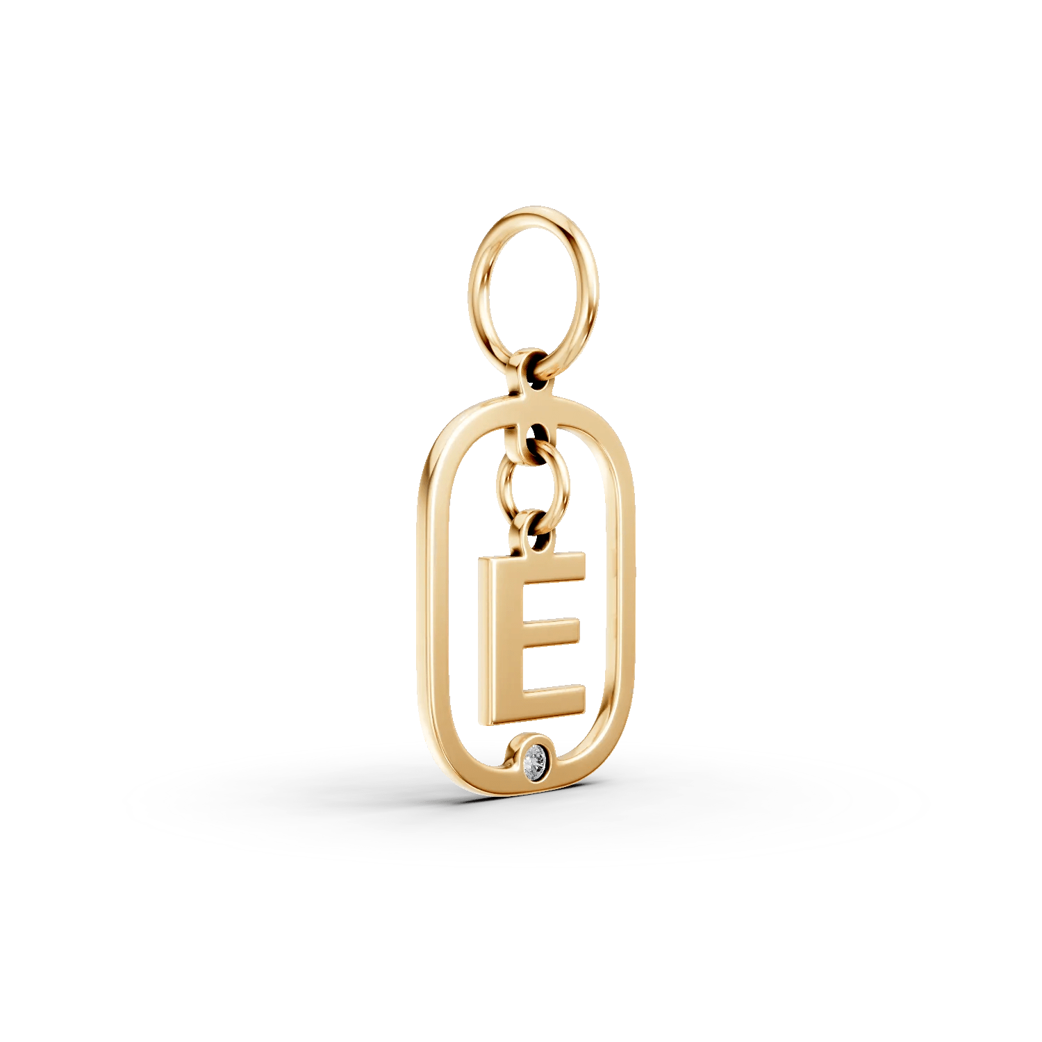 Acest pandantiv delicat, cu iniţiala E, este realizat din aur galben şi are un diamant de 0.005ct. Designul său modern se îmbină armonios cu strălucirea subtilă a diamantului, oferind o notă de eleganţă şi rafinament. Confecţionat cu grijă pentru a reflecta unicitatea fiecărei persoane.