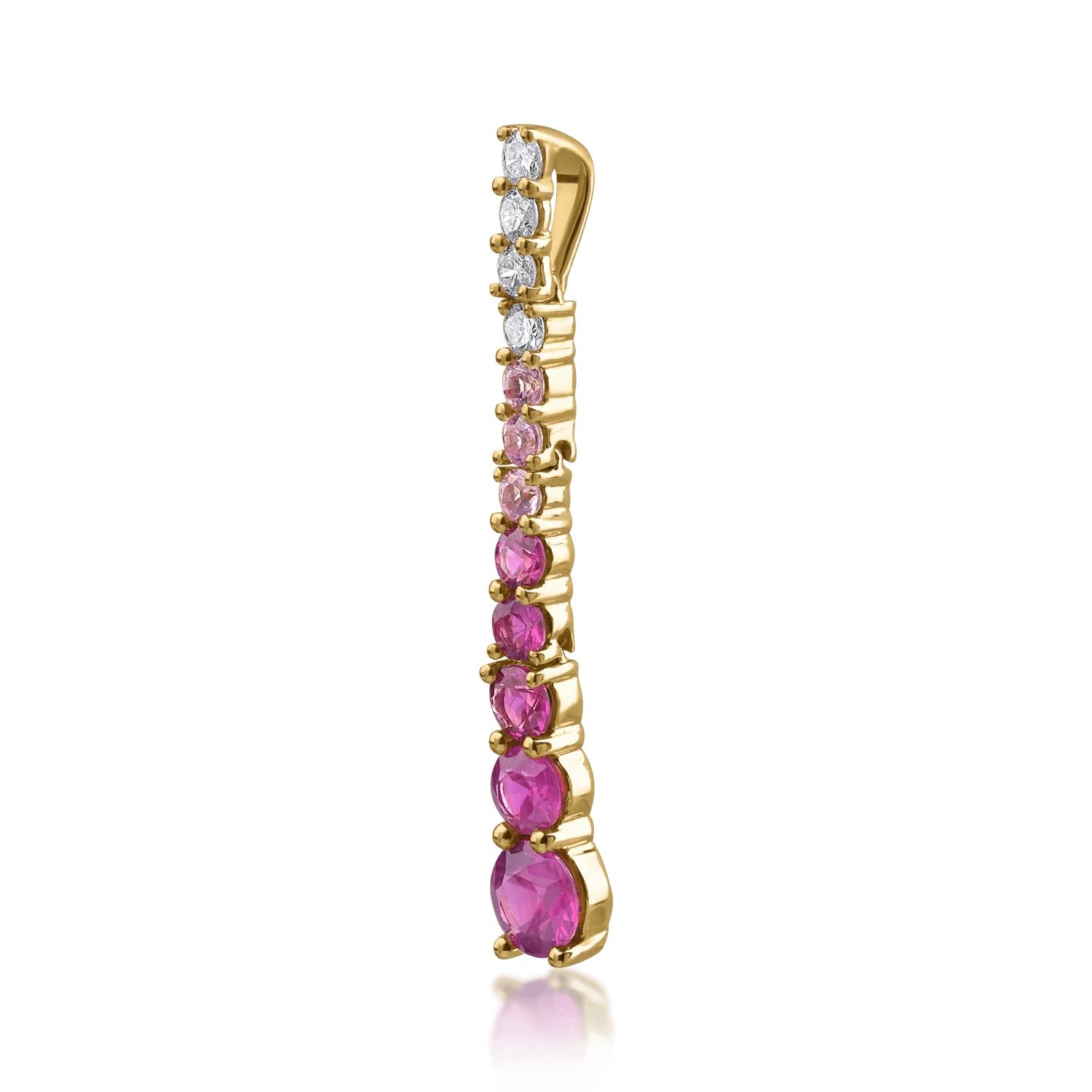 Acest pandantiv pune în valoare strălucirea aurului galben și rafinamentul pietrelor semiprețioase. Include diamante, rubine și safire roz, totalizând 1.29ct, într-o armonie vizuală deosebită. Perfect pentru orice ocazie, adaugă o notă de eleganță naturală și rafinament atemporal.