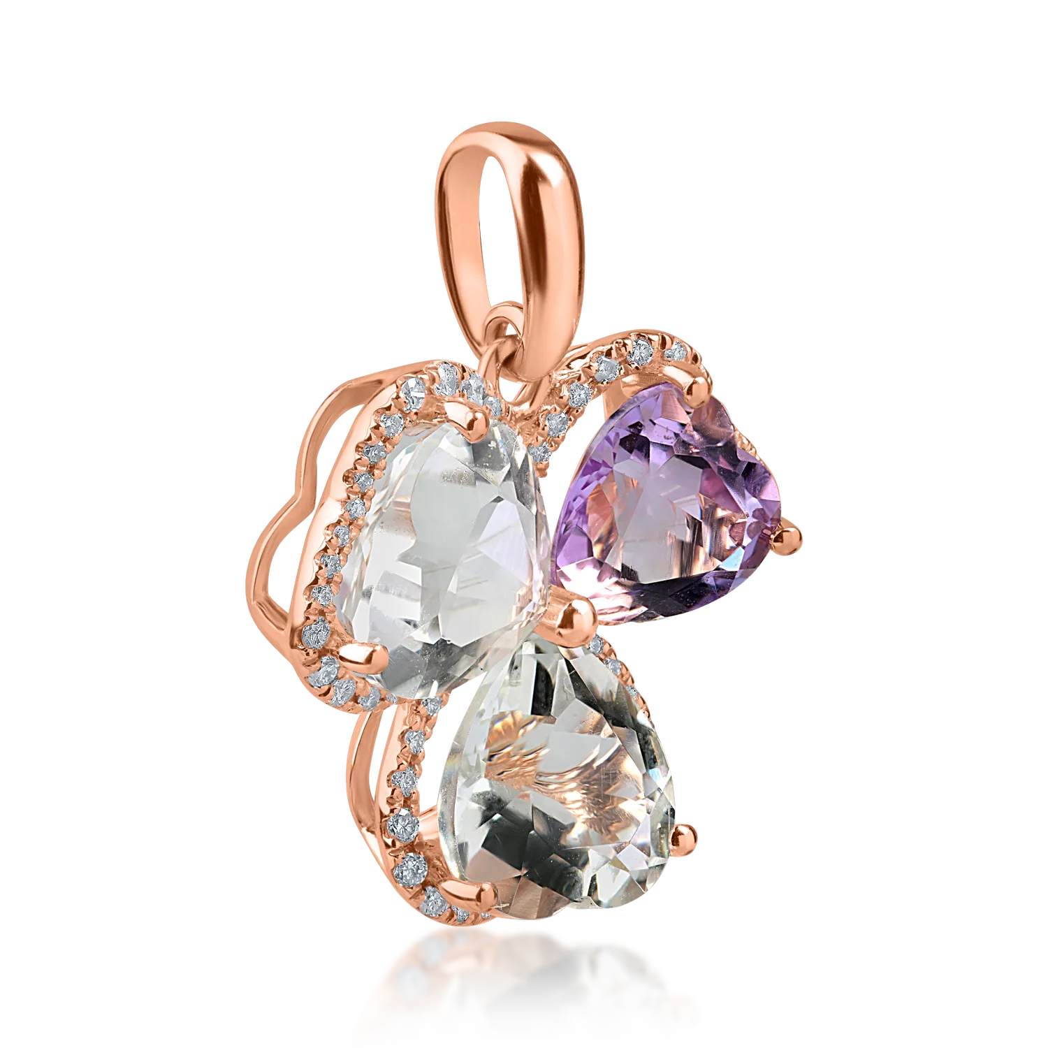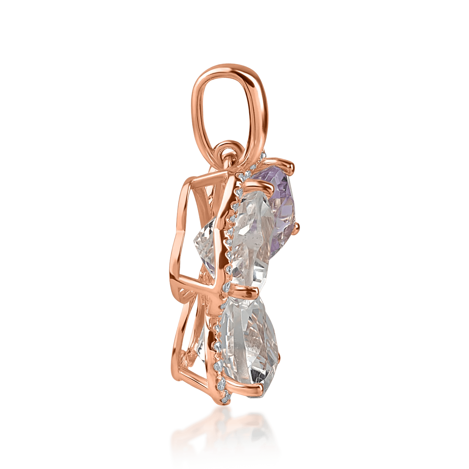Acest pandantiv din aur roz impresionează prin combinația de ametiste heart de 6.2ct și diamante de 0.2ct, creând un echilibru perfect între culoare și strălucire. Cu un design delicat și elegant, completează orice ținută cu rafinament.