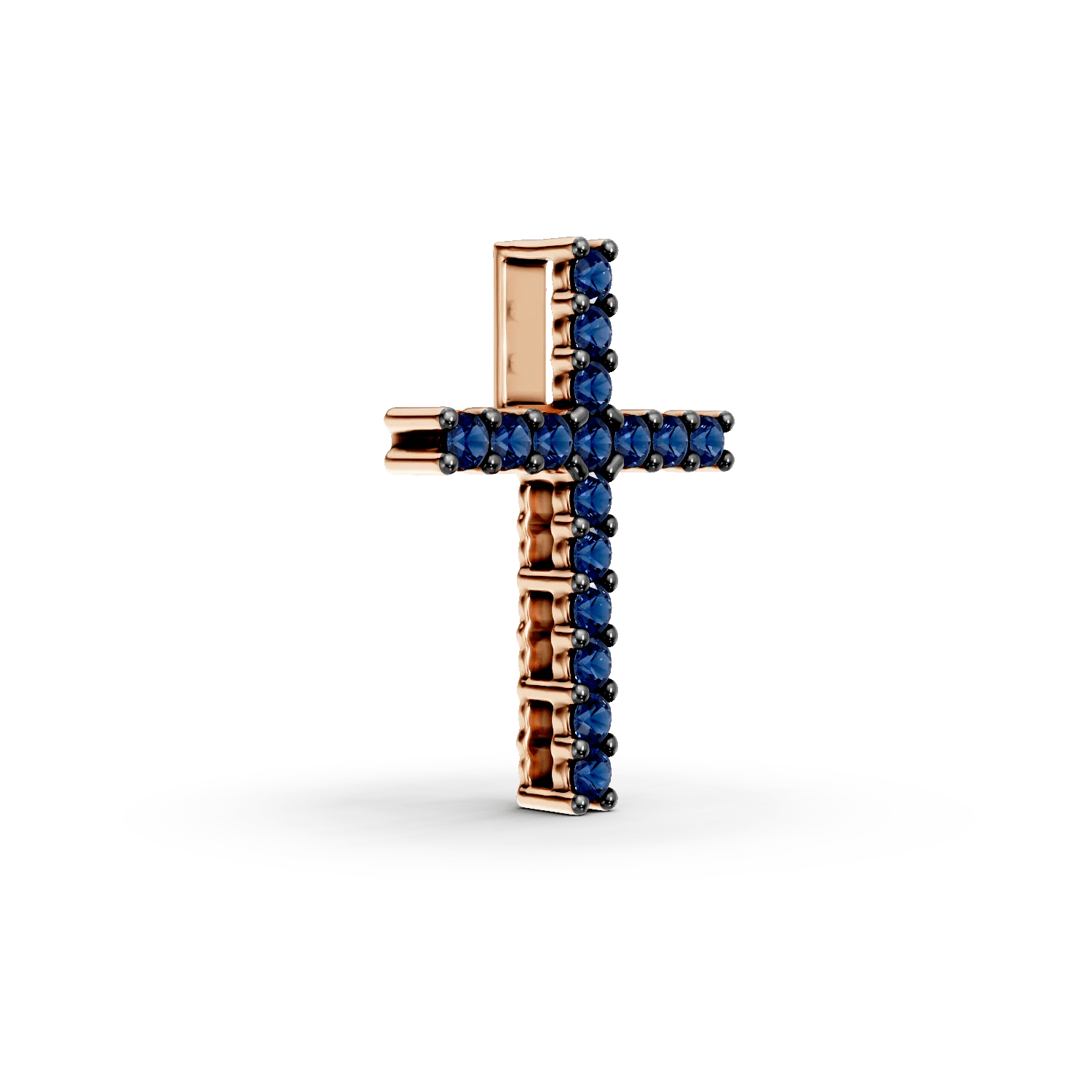 Acest pandantiv evidențiază eleganța și rafinamentul prin designul său minimalist. Fabricat din aur roz, cu safire de 0.17ct, aduce un plus de prețiozitate ținutelor simple. Reflexiile albastre ale pietrelor se îmbină armonios cu nuanța aurului, oferind o notă subtilă de eleganță.