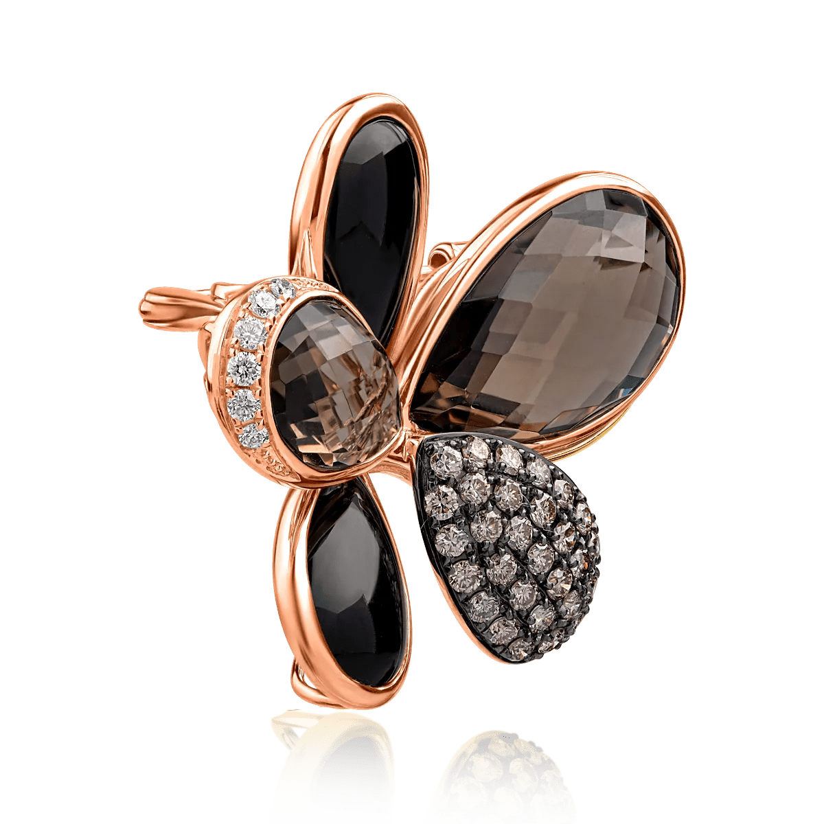 Descoperă rafinamentul acestui pandantiv din aur roz, înfrumusețat cu pietre prețioase și semiprețioase de 20.98ct. Cuartul fumuriu și onyxul negru, ambele tăietură pear, se îmbină armonios, completate de diamante ciocolatii și incolore care adaugă strălucire și adâncime. Un design clasic, dar expresiv, perfect pentru orice eveniment.