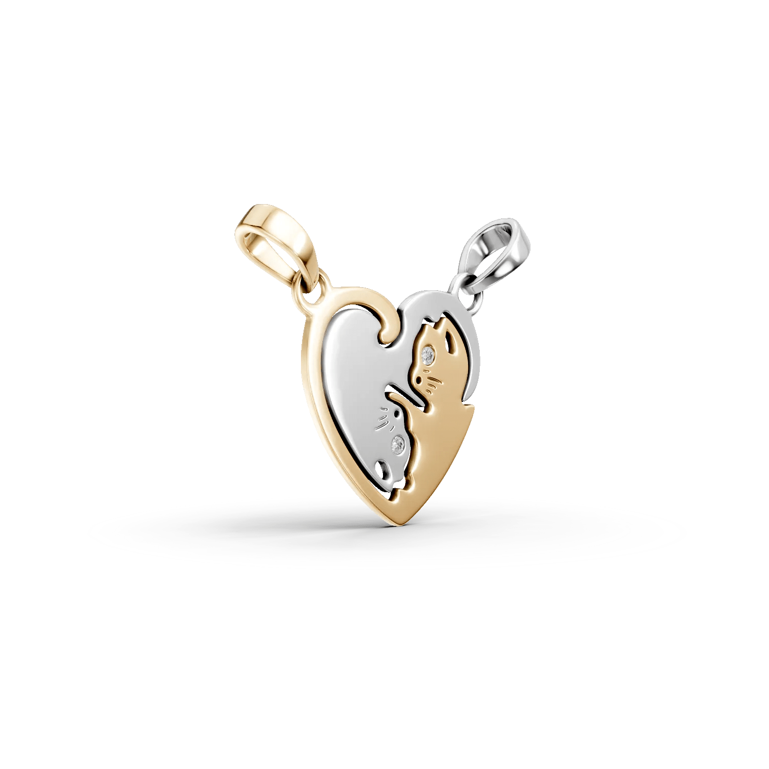 Acest pandantiv dublu cu design de pisicuțe este realizat din aur alb-galben și include diamante de 0.004ct, aducând o notă de strălucire delicată celor mici. Simbolizând prietenia și bucuria copilăriei, acest accesoriu este ușor și confortabil de purtat, oferind un farmec aparte.