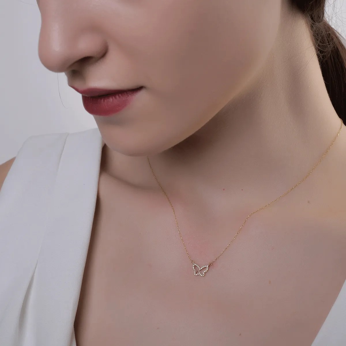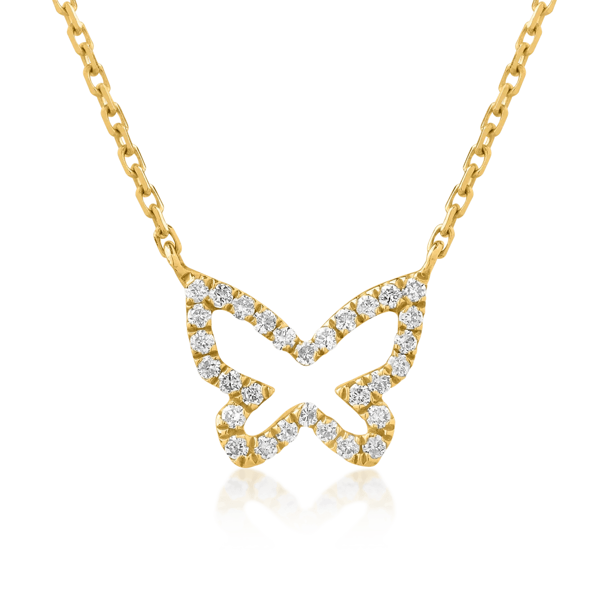 Bucură-te de un stil sofisticat cu acest pandantiv fluture realizat din aur galben, decorat cu diamante de 0.061ct. Detaliile sale meticulos lucrate sunt un simbol al grației și libertății.