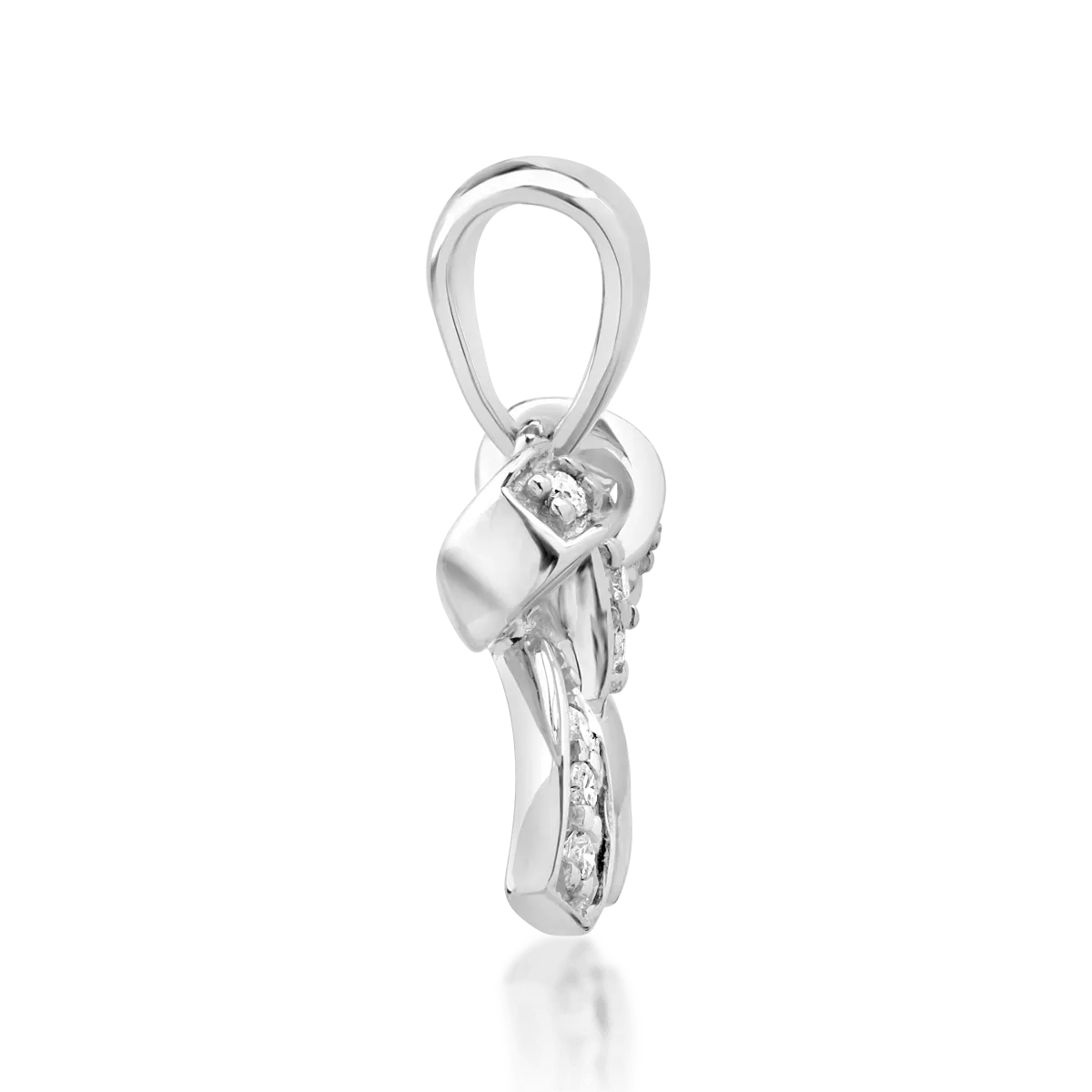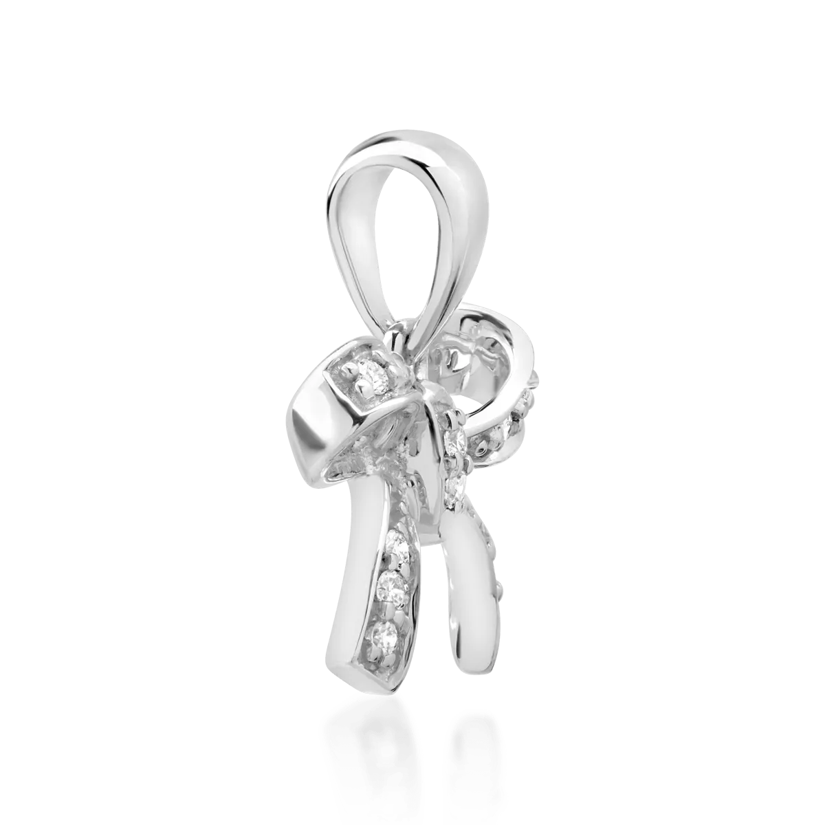 Descoperă eleganța acestui pandantiv delicat din aur alb, decorat cu diamante de 0.073ct. Designul său feminin și sofisticat, sub formă de fundiță, adaugă un plus de rafinament oricărei ținute, simbolizând legătura dintre frumusețe și atitudine.