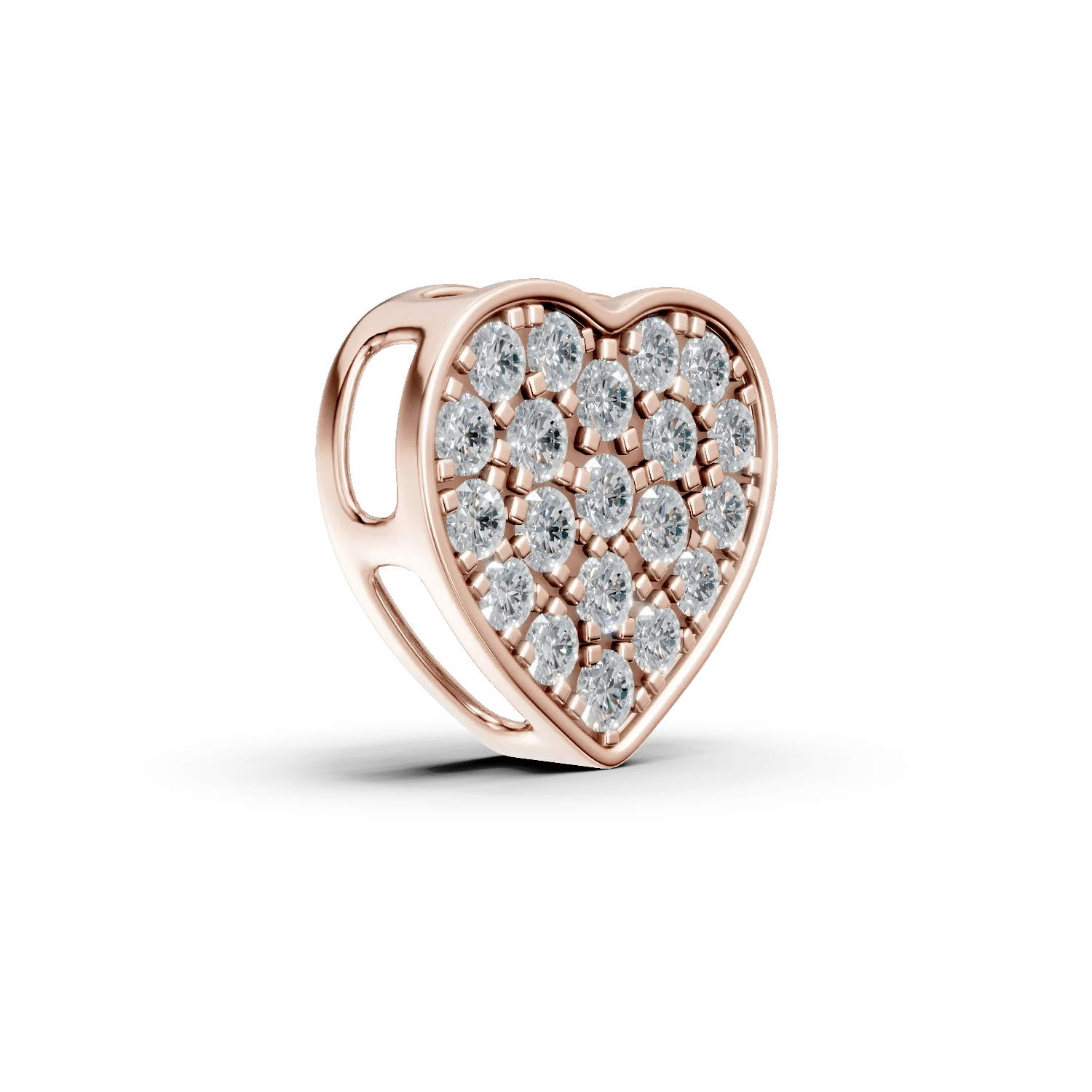 Acest pandantiv în formă de inimă este realizat din aur roz și înfrumusețat cu diamante de 0.22ct. Designul delicat și fațetele strălucitoare ale pietrelor oferă un efect de lumină discret, în timp ce aurul roz adaugă un plus de rafinament și căldură. Bijuteria se distinge prin echilibrul său perfect între eleganță și feminitate naturală.