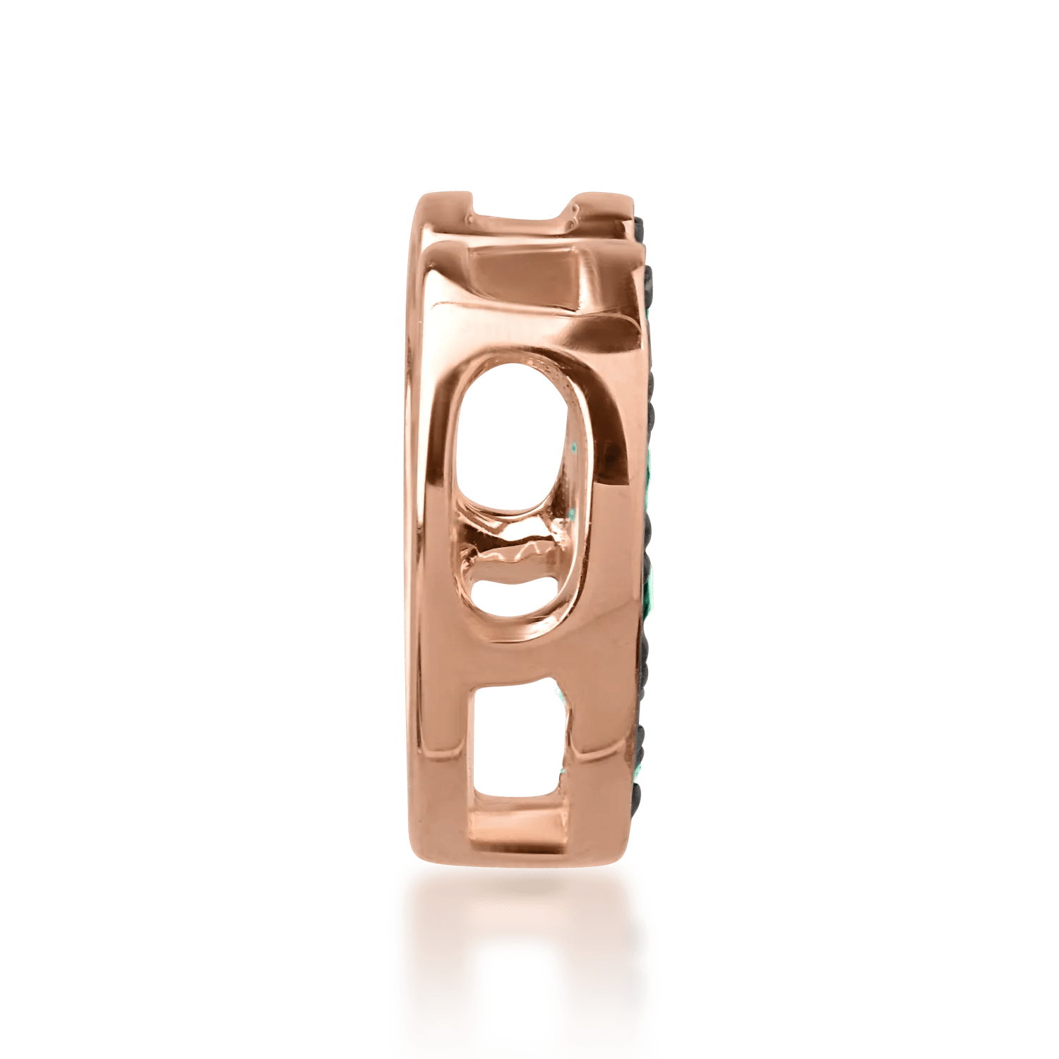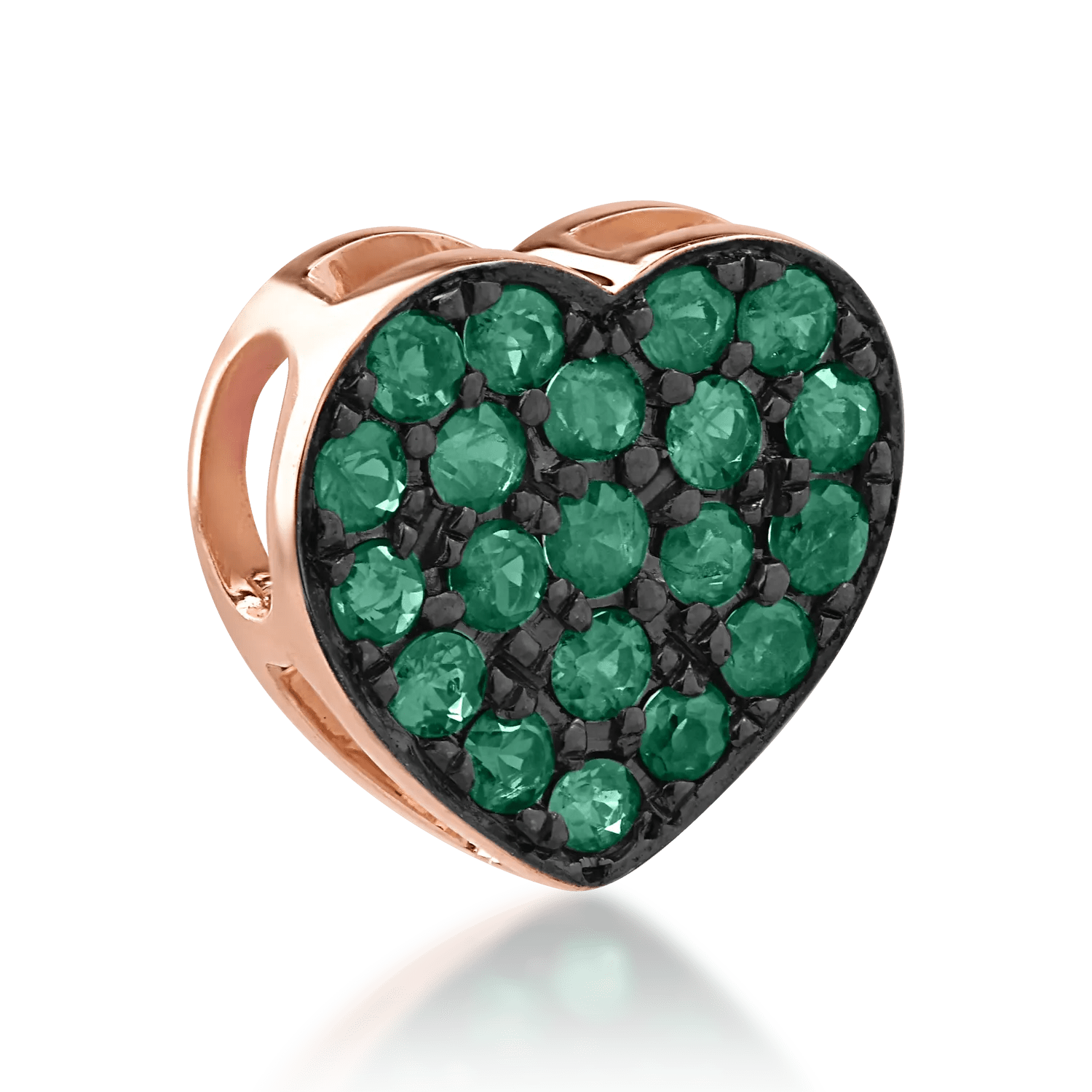 Alege pandantive care îți pun în valoare frumusețea interioară. Acest pandantiv cu design romantic în formă de inimă, realizat din aur roz și smaralde de 0.16ct, combină eleganța detaliilor cu tonuri calde și nuanțe vibrante.
