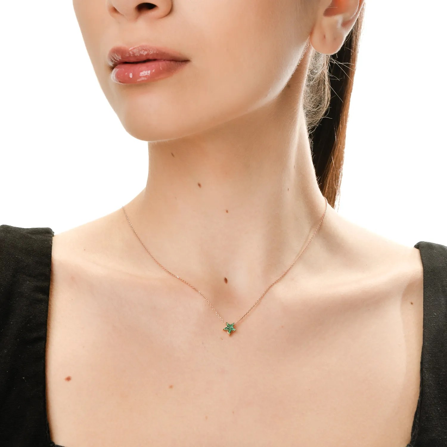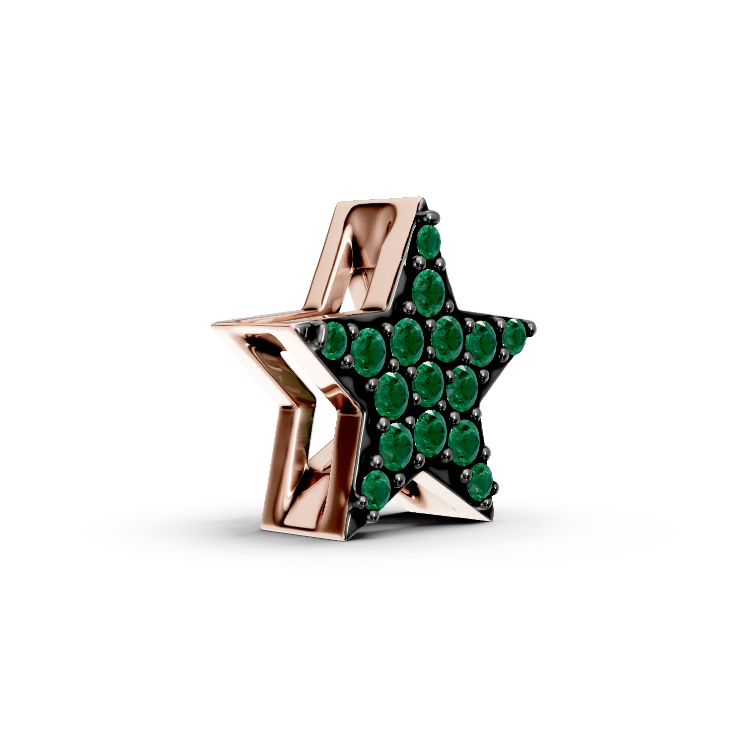 Acest pandantiv steluță din aur roz cu smaralde de 0.07ct aduce o notă elegantă colecției tale de bijuterii. Tonurile calde ale aurului roz sunt completate de reflexiile verzi ale smaraldelor, oferind prospețime și vitalitate. Designul delicat și fațetele fine surprind lumina subtil, aducând un echilibru rafinat și o eleganță aparte.