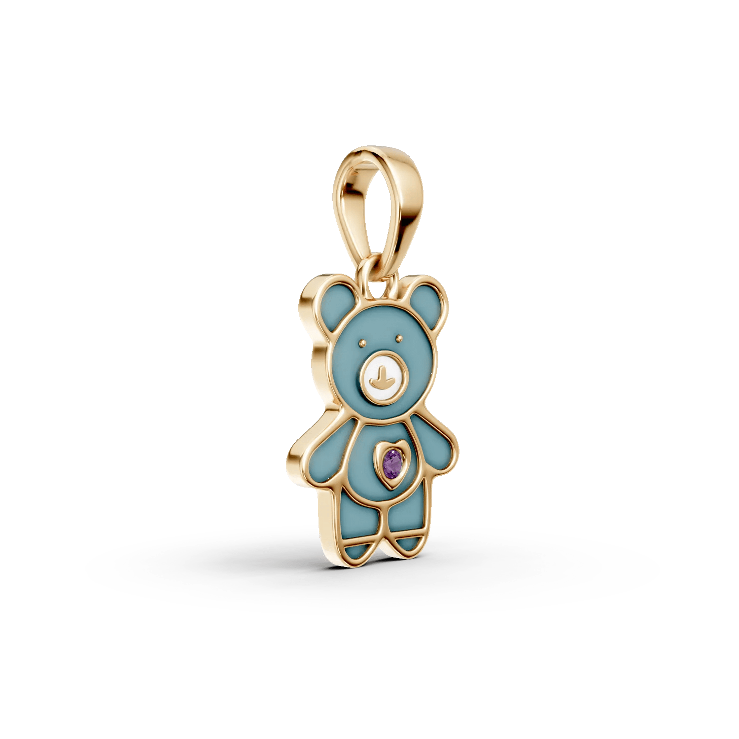 Acest pandantiv adorabil, din aur galben, are un design de ursuleț și este decorat cu un safir roz de 0.01ct și email. Reprezintă un simbol al protecției și afecțiunii, fiind un acompaniament sensibil pentru momentele prețioase ale copilăriei. Descoperă colecția pentru copii la TEILOR.