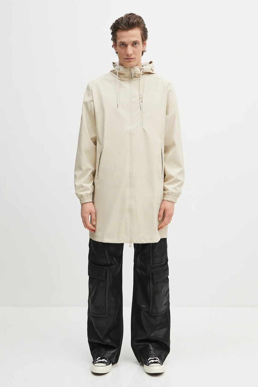 Geacă cu rezistență sporită la apă, concepută pentru confort în condiții umede. Închiderea cu fermoar facilitează utilizarea, iar gulerul ridicat împreună cu gluga fixă oferă protecție suplimentară.